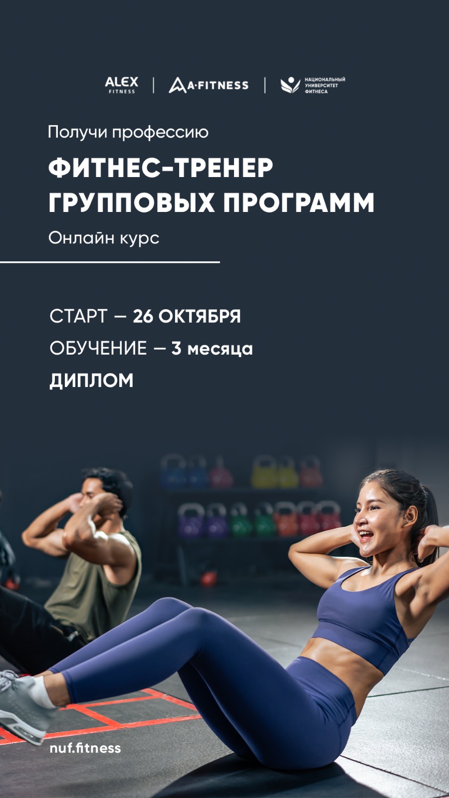 Лучшим студентам даём рекомендации и возможность стать сотрудником сети фитнес-клубов Alex Fitness и A-Fitness.